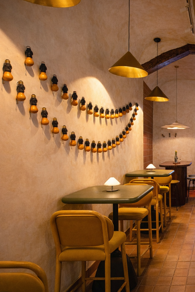 Casa Nokiate, located in Chueca in the heart of Madrid, blends modern craftsmanship with Japanese influence, merging Latino and Japanese cultures to create a sophisticated experience rooted in cultural celebration. Conceived as a small neo-taverna serving curated small plates, the project transforms a compact, elongated space into an intimate and immersive dining environment.